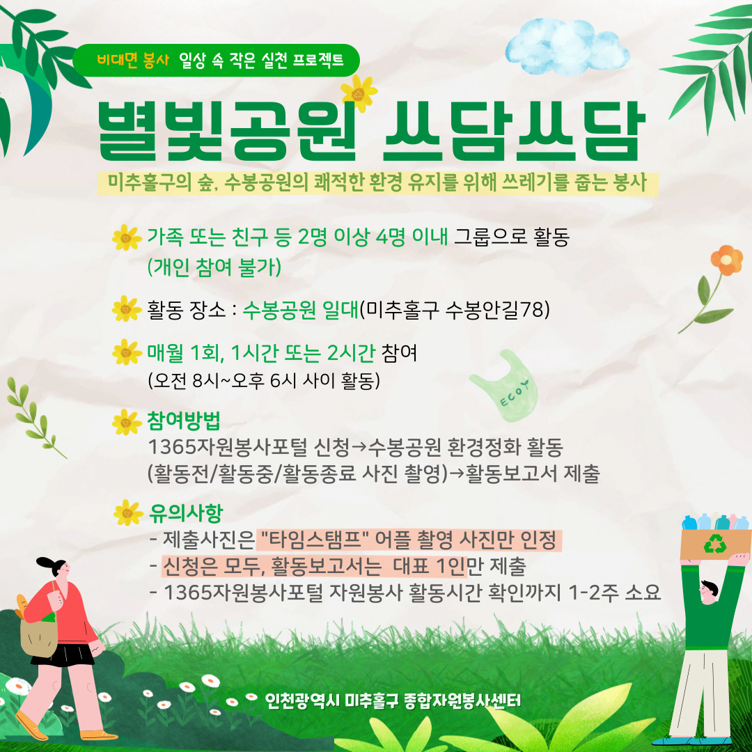 - 2인 이상 4인 이내 그룹이 수봉공원 내 환경정화활동