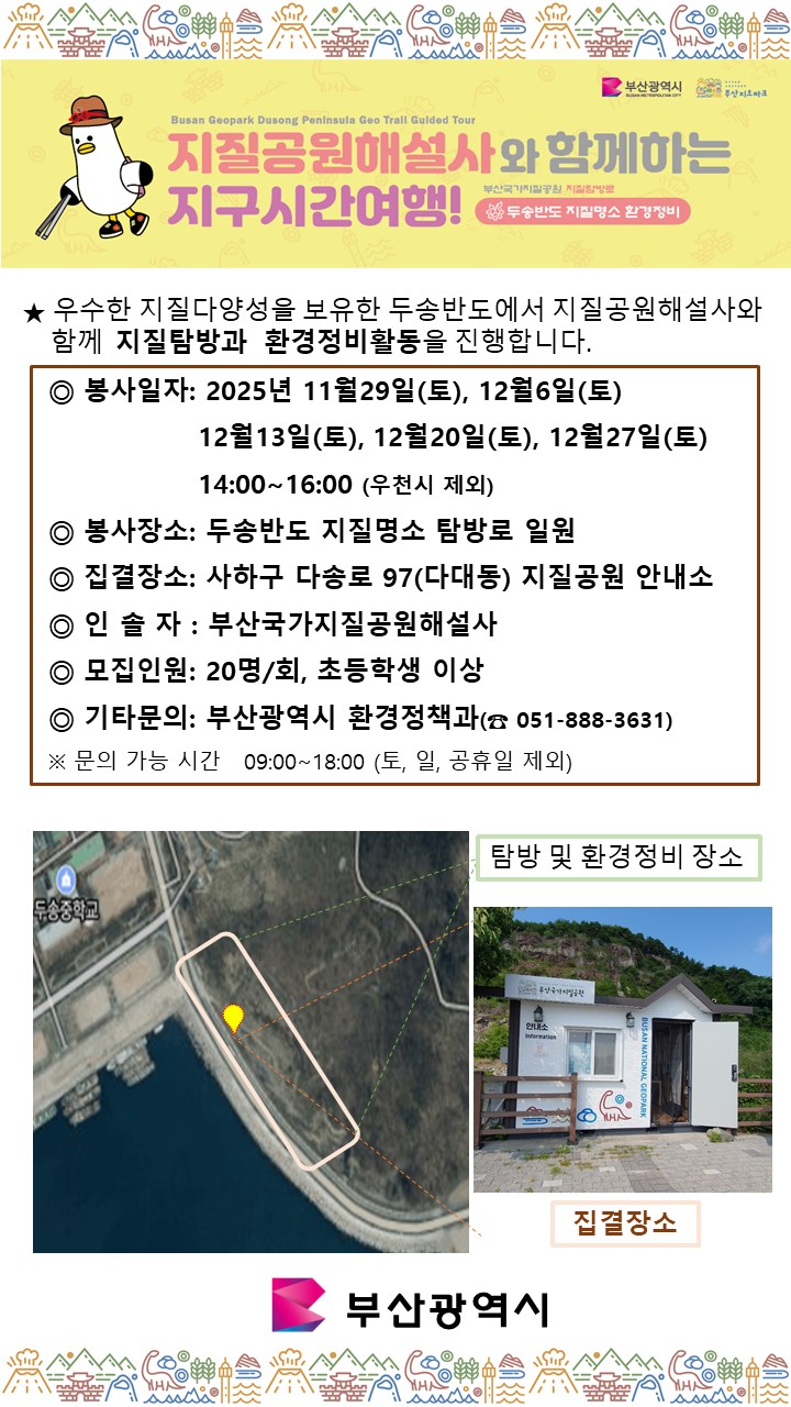 2. 장 소: 사하구 다송로 97(다대동) 두송반도 안내소 일원 지질명소