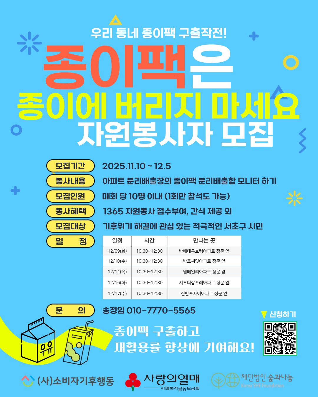 종이팩 자원봉사자 모집(서초구)