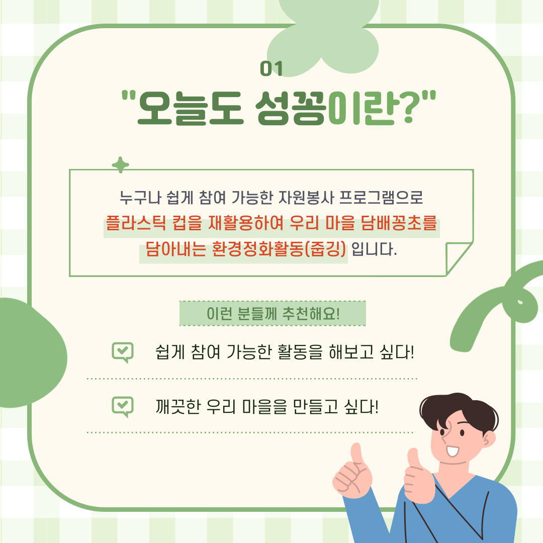 깨끗한 환경을 위해 '오늘도 성꽁'에 함께 해주세요!
