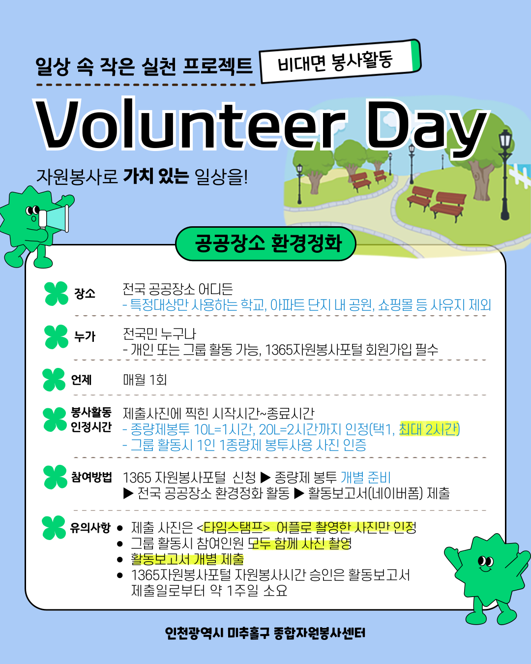 [미추홀구자원봉사센터] 1월 Volunteer Day(V-day) 공공장소 환경정화(비대면 활동)