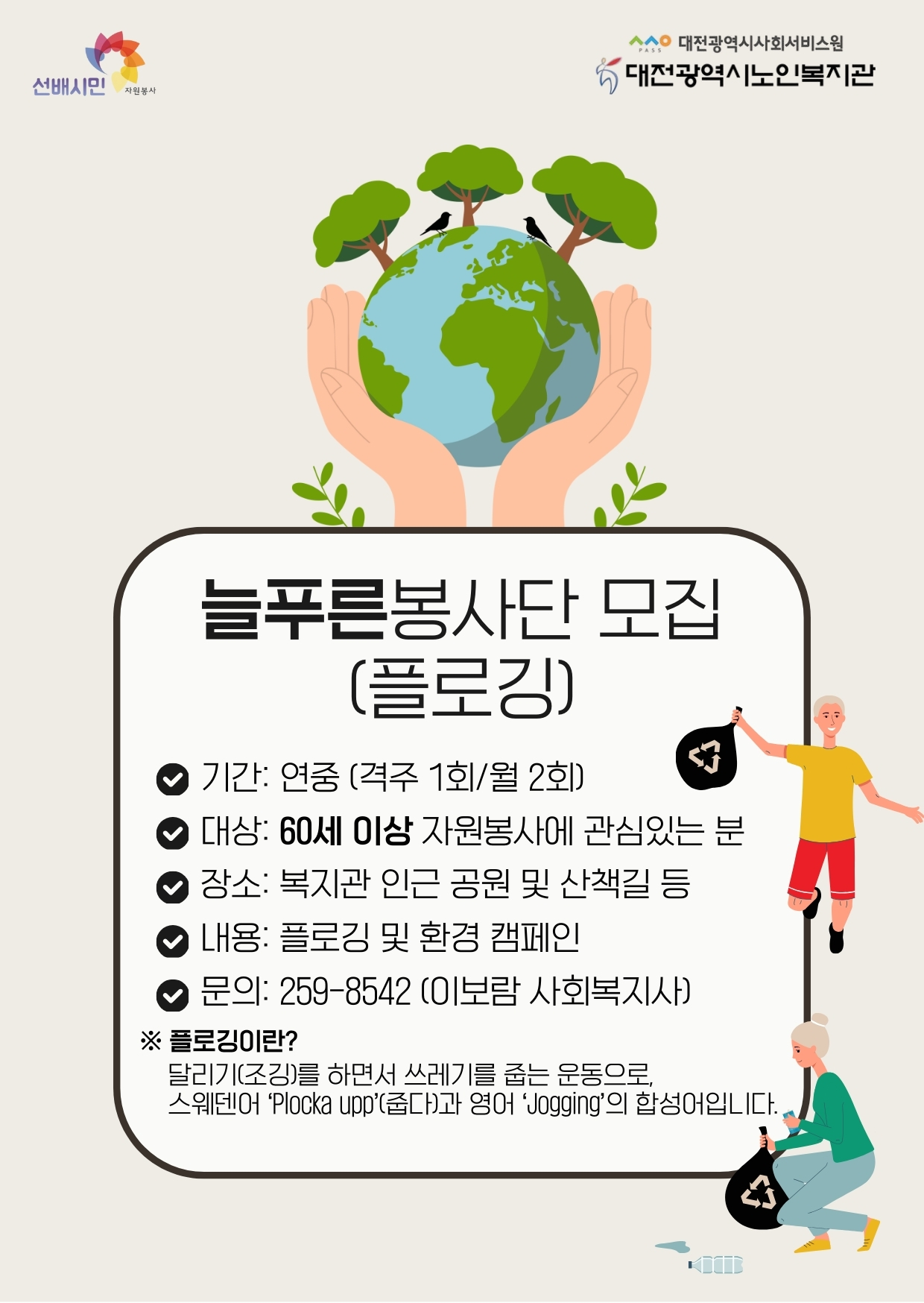 안녕하세요! 대전광역시노인복지관에서 우리 동네를 사랑하고 환경을 아끼는 마음을 가진 어르신들을 위해 ‘늘푸른봉사단’의 문을 활짝 열었습니다.