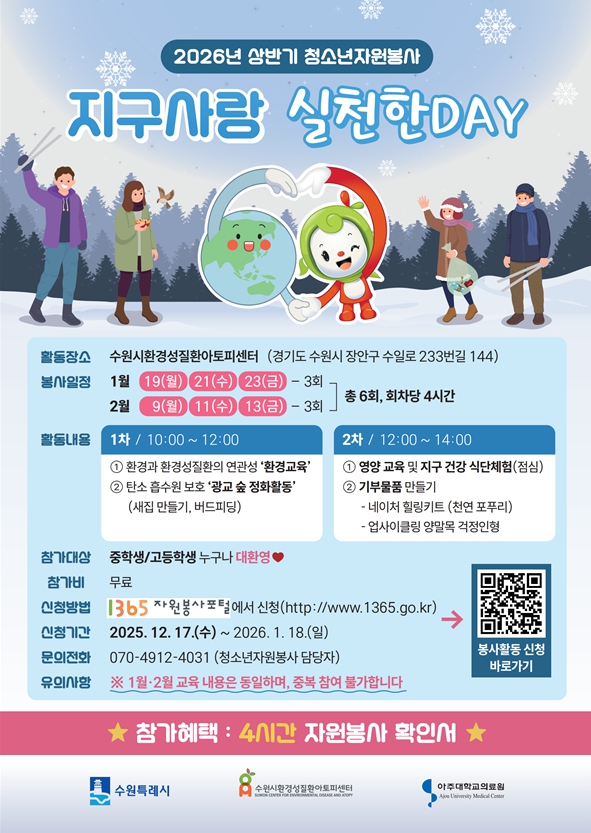[청소년자원봉사] '지구사랑 실천한 DAY' 광교산 숲정화 활동 및 기부물품 만들기