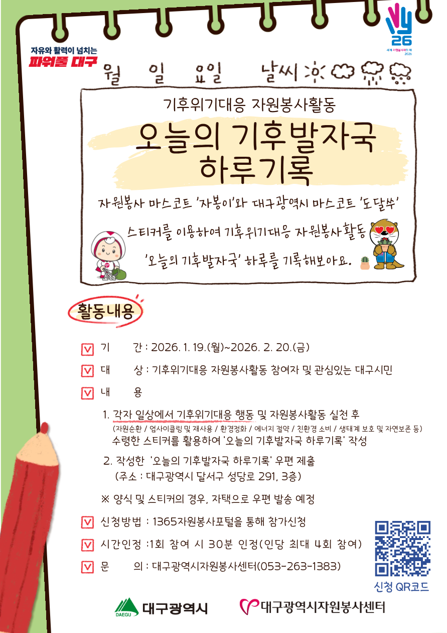 [대구광역시자원봉사센터] 오늘의 기후발자국, 하루기록 활동