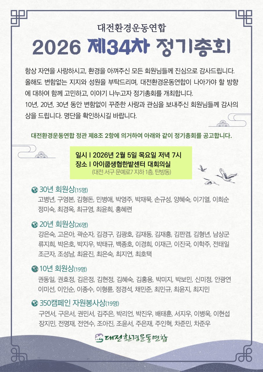 *제목: <대전환경운동연합 제34차 정기총회> 행사 안내 및 업무보조