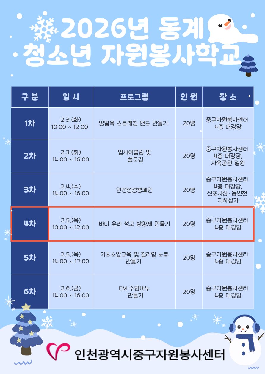 (신포동-4차) ★동계 청소년자원봉사학교★ 바다 유리 석고 방향제 만들기