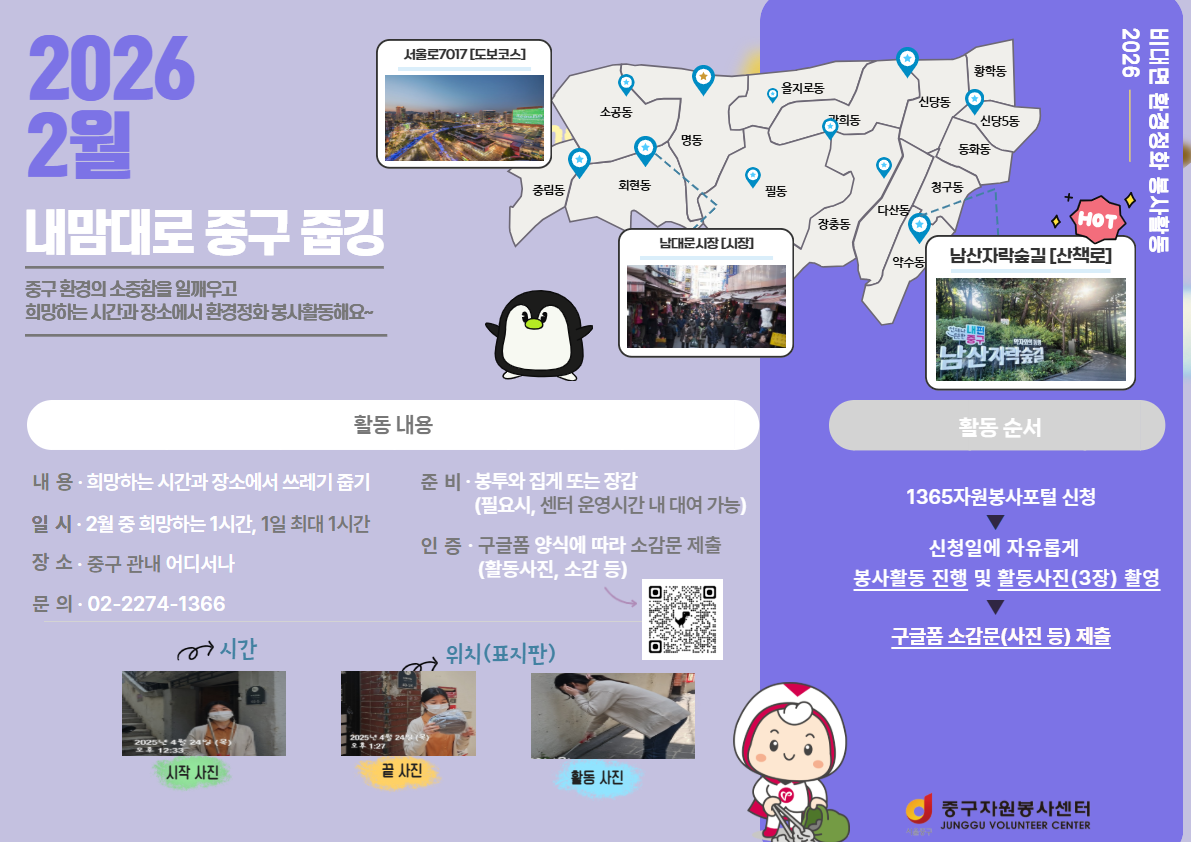 [중구자원봉사센터] 비대면 환경정화 봉사활동 '내 맘대로 중구 줍깅' (모집중)