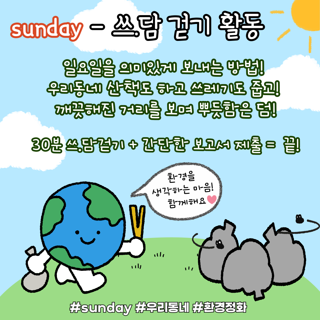 (부천시소속/초등5학년~중.고등학생/비대면)+sunday 쓰담 걷기활동(환경정화 활동)