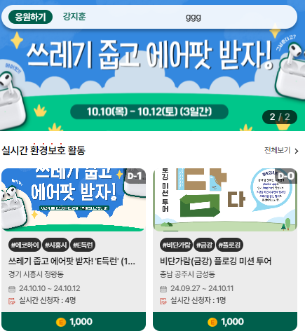 ※ 플로깅 활동을 인증한 시민 대상으로 추첨을 통해 스타벅스 커피 쿠폰을 제공합니다.